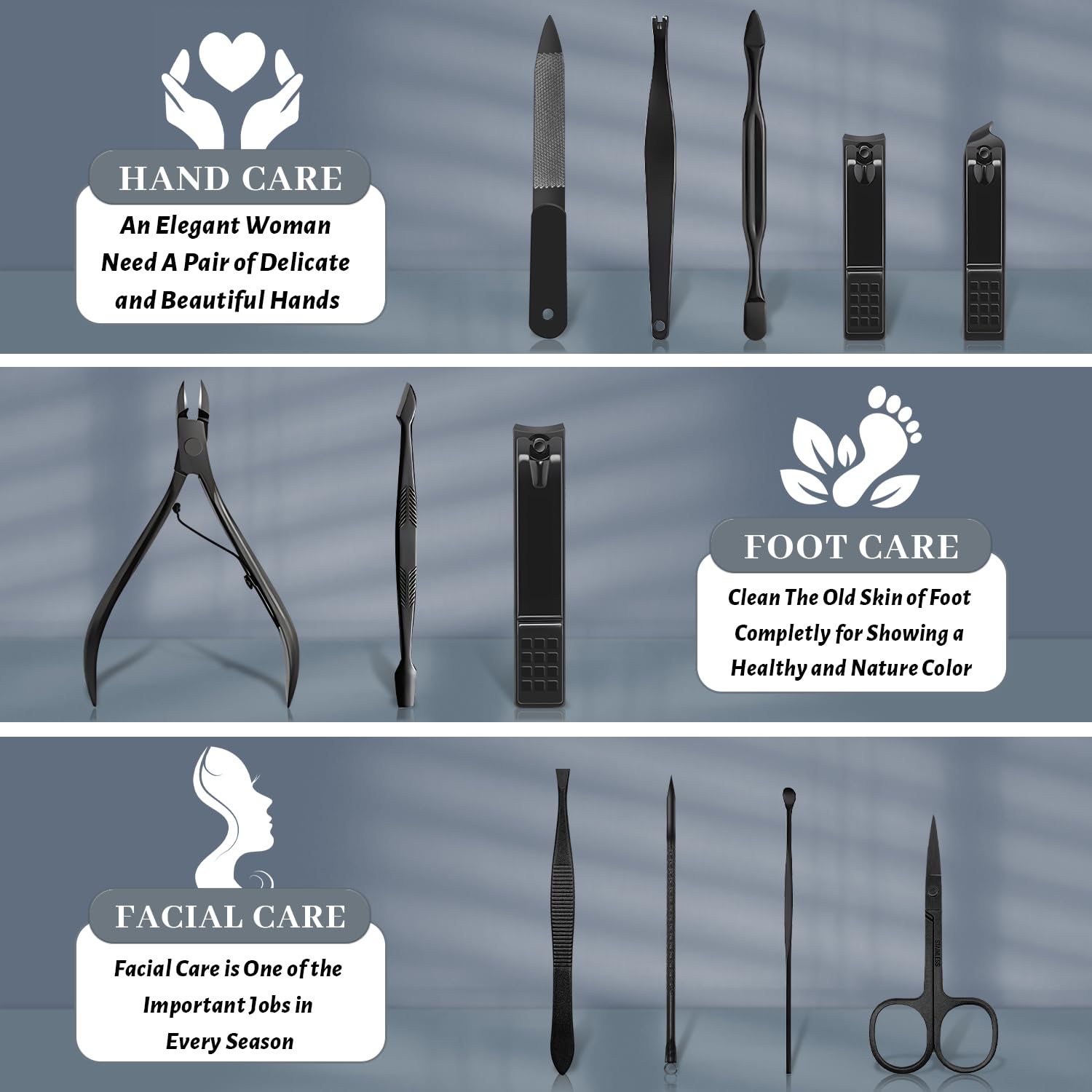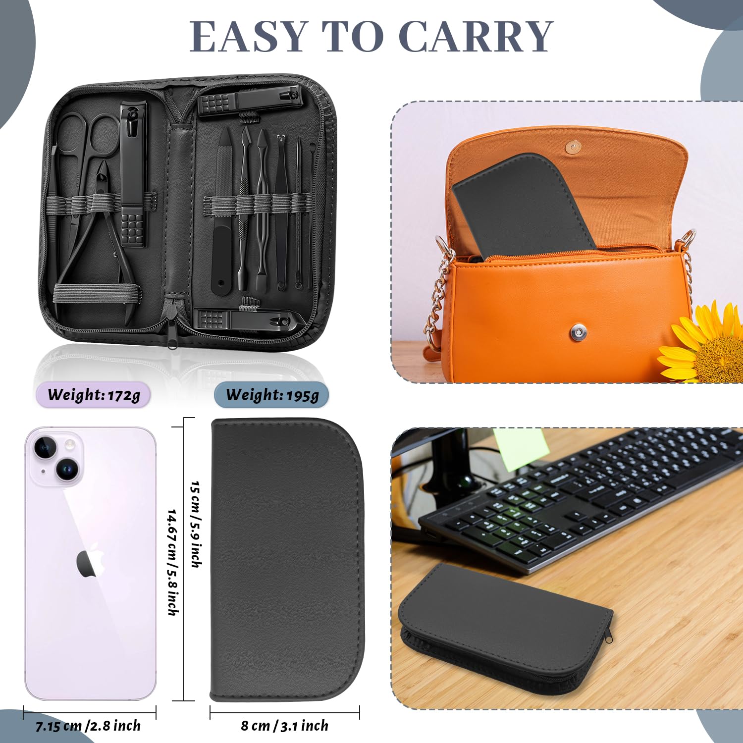 ✔ 12-in-1 convenience – all the tools you need for hands, feet & face in one cute kit!